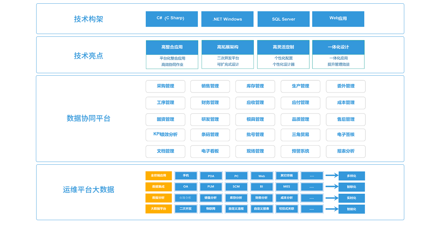 顺景开云足球,以制造为核心,将制造企业核心的生产管理需求与供应链管理、财务管理相结合完美结合,打造以生产计划为核心的全程一体化管理体系,打破各部门、各环节、各系统之间沟通和协作的壁垒,建立规范、灵捷、高效的业务流程,实现销售、PMC、采购、仓库、品质、人资、财务、工程技术部门等所有环节全程无缝管理,确保了数据信息在传递过程中的准确性、时效性和有效性,帮助企业快速反应、紧密协作、良好运营,更快推进业务发展,全面提升核心竞争力